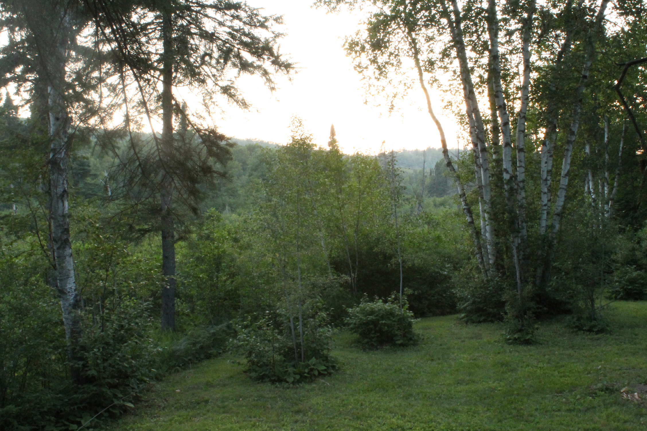 Tall evergreens and maples give us pause.